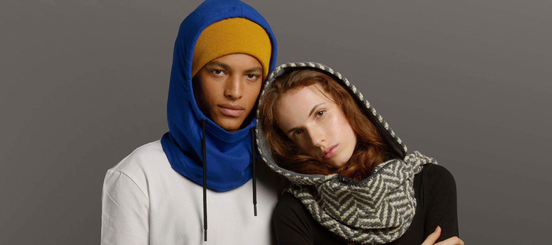 Sciarpuccio (pronounced “sharpootcheeo”) is a rebel streetwear accessory inspired by metropolitan nightlife and underground Milanese culture. A hood (cappuccio) and a neck/scarf (sciarpa) harmoniously blend into an extremely practical and versatile fashion item.