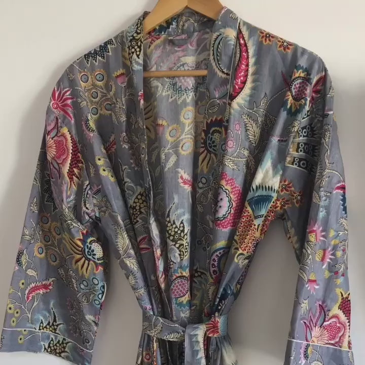 Robe kimono aux imprimés floraux pour compléter votre style boho ou vos tenues de plage en été. Peut aussi être porté en guise de robe d'intérieur confortable et élégante.