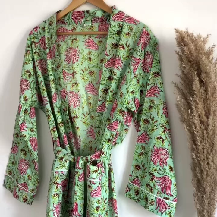 Kimono dress with floral prints to complement your boho styles or beach outfits in summer. You can wear it as a cosy housedress for a charming look.